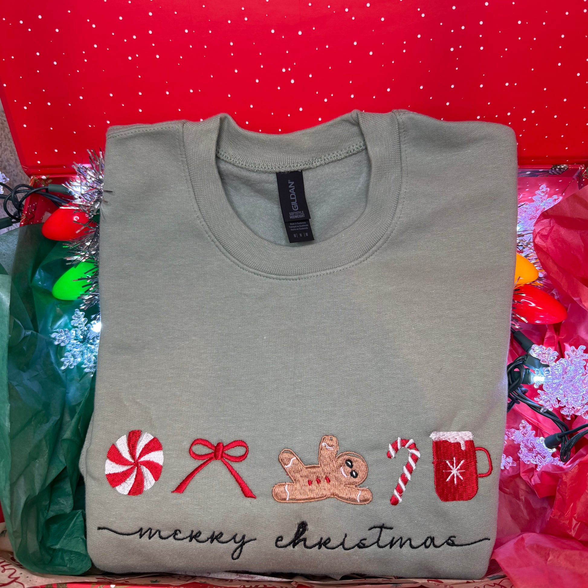The sweetest sweatshirt for the holiday season 🍬🎄☕️Candy canes, cocoa, and cozy embroidery 🩵